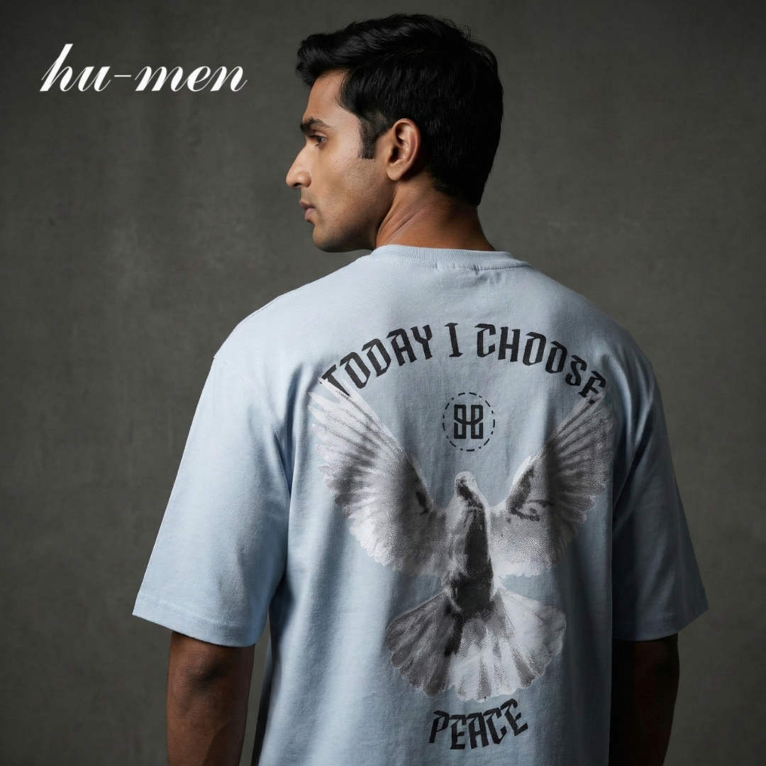 This Dove with white feather t-shirt is a must have for any fashion forward individual, which hints the Hu-men’s finest design “The Peace”, with it’s clean premium feel and oversized fit. This t-shirt exudes peace and style.